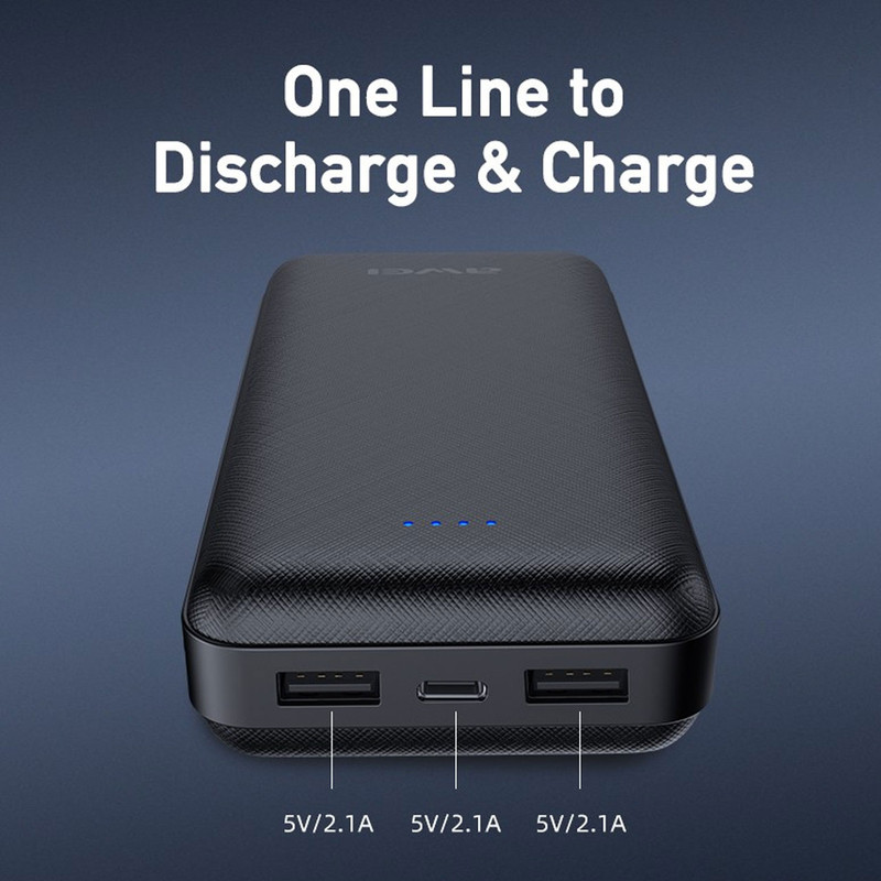 پاور بانک مدل P6Kاوی با طراحی خوش ساخت و بدنه ای از پلاستیک سخت، مقاومت بالایی را در برابر ضربه، فشار و حرارت از خود نشان می دهد. بر روی این شارژر همراه دو پورت خروجی USB تعبیه شده است و با حداکثر شدت جریان عبوری 2٫1 آمپر در 5 ولت امکان شارژ انواع گوشی موبایل، تبلت و دیگر دستگاه ها را با سرعت مطلوب و ایمنی کامل فراهم خواهد کرد. این پاوربانک به باتری لیتیوم پلیمری با ظرفیت 10000 میلی آمپر ساعت مجهز شده و با پشتیبانی از فناوری شارژ سریع، می تواند دو دستگاه مختلف را به صورت همزمان در زمان کوتاه تری شارژ نماید. دو درگاه ورودی نوع Type-C و MicroUSB نیز جهت شارژ پاوربانک در نظر گرفته شده که با شدت جریان 2٫1 آمپر در 5 ولت عملیات شارژدهی به این دستگاه را انجام می دهند. همچنین چیپست هوشمندی نیز برای بالابردن ایمنی شارژ در پاوربانک Awei P6Kوجود دارد که با تشخیص و متناسب سازی شدت جریان مورد نیاز دستگاه های متصل شده، از آسیب به باتری آنها در برابر میزان بار اضافی، قطع و وصل جریان، نوسانات ولتاژی، اتصالات کوتاه، حرارت بالا و … محافظت می کند. نشانگر LED به منظور نمایش وضعیت شارژ باتری و کلید فیزیکی برای روشن و خاموش کردن دستگاه نیز بر روی بدنه آن قرار دارد.