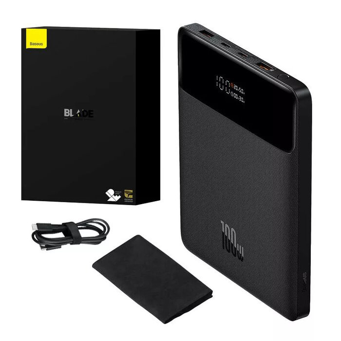 با توجه به افزایش روز افزون لوازم الکترونیکی افزایش استفاده از پاوربانک به شدت افزایش یافته تا در حین استفاده دچار کمبود شارژ نگردیم ولی اکثر پاوربانک ها توان بالایی برای پشتیبانی از گوشی های با سرعت شارژ بالا و یا شارژ تبلت و لپ تاپ را ندارند.شرکت Baseus با تولید پاوربانک مدل BALDE HIGH POWER که تحت عنوان سری BLADE عرضه میشود را روانه بازار کرده تا این نیاز را بر طرف نماید. BALDE HIGH POWER قادر است لپ تاپ و گوشی تبلت و یا هر وسیله الکترونیکی شما را با توان 100 وات شارژ کند البته این پاور بانک مجهز به چیپ هوشمند کنترل جریان ورودی به دستگاه شما میباشد و شدت ولتاژ ورودی به دستگاه شما بستگی به عوامل مختلفی مثل استفاده در زمان شارژ میزان درصد شارژ باطری دستگاه شما و ... عوامل دیگر میباشد این پاوربانک از 2 پورت USB و 2 پورت USB-C جهت شارژ 4 دستگاه هم زمان بهره میبرد که داشتن 2 پورت USB-C با قابلیت PD در نوع خود نادر است توجه داشته باشید برای شارژ بهینه لازم است از پورت PD و کابل دو سر TYPE-C همراه پاوربانک و فقط یک دستگاه به پاوربانک متصل کنید بدیهی است با اتصال بیشتر از یک دستگاه توان خروجی طبق دفترچه راهنما بین پورت های خروجی تقسیم میشود. همچنین لازم به ذکر است حداکثر توان ورودی پورتهای USB-C جهت شارژ پاوربانک به 60 وات میرسد. درنتیجه اگر از یک آداپتور 60W برای شارژ باتری 20000 میلیآمپرساعتی این پاوربانک استفاده کنید، شارژگیری آن درعرض 1.5 ساعت کامل میشود.از نکات خاص این پاوربانک نمایش شدت جریان و ولتاژ ورودی و خروجی دستگاه و زمان تقریبی شارژ دستگاه است.باتری لیتیوم-پلیمری این پاوربانک پایداری عملکرد خود در همهی شرایط دمایی را حفظ و تضمین میکند. پاوربانک BALDE HIGH POWER بیسوس کاملاً ایمن است و دارای استانداردهای هواپیما، به همین دلیل میتواند در تمام مسافرتها، بدون هیچ دردسری همراهیتان کند. توجه کنید ظرفیت واقعی این پاوربانک طبق مشخصات نوشته شده در پشت پک 20000میلی آمپر میباشد و با شماره مدل PPBLD100-X از مدل دیگر سری BLADE متمایز میشود.