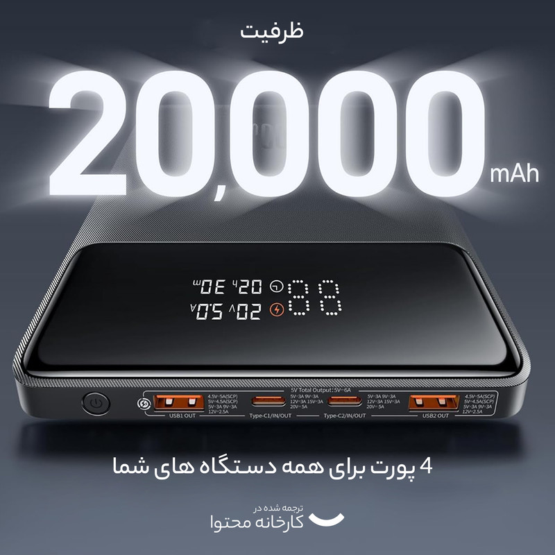 پاوربانک بیسوس مدل BALDE HIGH POWER DIGITAL DISPALY PPBL000201 100W ظرفیت 20000 میلی آمپر ساعت