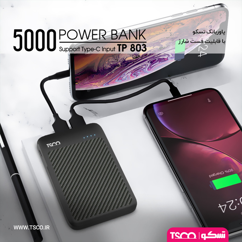 پاوربانک تسکو مدل TP 803 ظرفیت 5000 میلی آمپر ساعت
