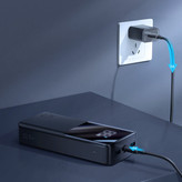 پاوربانک 20000 جویروم Joyroom JR-QP192 Power Bank 20000mAh توان 22.5 وات همراه داشتن پاوربانک امروزه به امری واجب تبدیل شده است اگر بخواهید با گوشی خود مدت زمان زیادی کار کنید.اگر شما قصد خرید یک پاوربانک را دارید حتما باید از قبل نیاز خود را شناسایی کرده باشید تا در انتخاب آن به مشکل بر نخورید. پاوربانک جویروم JR-QP192 با پورتهای مختلفی که دارد، امکانات خوبی را برای کاربران فراهم کرده که در ادامه به نقدی و بررسی آن خواهیم پرداخت. مشخصات پاوربانک Joyroom JR-QP192 پاوربانک جویروم JR-QP192 از جنس پلاستیک ABS و پلاستیک ضد حریق PC ساخته شده است که مقاومت بالای دارد. این پاوربانک دارای ابعاد 150x69x41 میلی متر بوده و وزنی حدود 500 گرم دارد. بر روی پاوربانک Joyroom JR-QP192 یک نمایشگر LED تعبیه شده که به شما میزان شارژ و اتصال را نشان می دهد. در قسمت بالای این محصول درگاه های پاوربانک Joyroom JR-QP192 وجود داشته که 2 درگاه ورودی (Type C ,Micro) و 3 درگاه خروجی (Type C ,USB1 ,USB2) می باشند؛ قابل ذکر است درگاه تایپ سی (Type C) درگاه مشترک بوده که هم قابلیت ورودی داشته و هم قابلیت خروجی دارد. به این معنی که می توانید پاوربانک را از طریق درگاه تایپ سی شارژ کرد و یا از درگاه تایپ سی برای شارژ دستگاه های خود استفاده کنید. در قسمت کناری این پاور بانک نیز دکمهی پاور برای روشن خاموش کردن دستگاه تعبیه شده است. ظرفیت اسمی این پاوربانک، معادل 20000mAh است؛ ولی باید توجه داشته باشید که متناسب با ولتاژ گوشی شما این ظرفیت تغییر خواهد کرد. برای مثال بازدهی باتری این پاوربانک، برابر با 12000mAh در ولتاژ 5 ولت (5V/3A) می باشد. تکنولوژی شارژ سریع QC و PD پاوربانک جویروم JR-QP192 از تکنولوژی شارژ سریع PD3.0 QC3.0, AFC, FCP, SCP, PE پشتیبانی می کند؛ و شما می توانید با استفاده از این درگاه ها دستگاه های (یک یا چند دستگاه) خود را با سرعت بالا شارژ کنید. باید توجه داشته باشید که در هنگام شارژ همزمان چندین دستگاه توان خروجی این پاوربانک بین پورت ها تقسیم خواهد شد. برای شارژ سریع نیاز است که دستگاه شما از این تکنولوژی پشتیبانی کند.