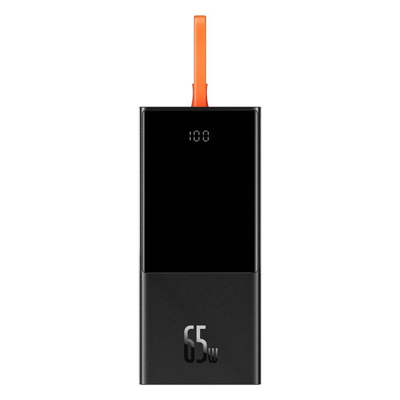 چه چیزی بهتر از یک پاوربانک با کابل متصل که زحمت جا به جایی شارژر را برایتان کم میکند؟ پاروبانک فست شارژ بیسوس Baseus Elf Digital Display 20000mAh Power Bank دارای یک کابل تایپ سی متصل است که همیشه همراهتان خواهد بود. توان کلی این پاوربانک 65 وات اعلام شده و دارای سه پورت است.همانطور که گفتیم یک کابل نارنجی رنگ به پاوربانک 20000 بیسوس Elf متصل است که از نوع Type-C میباشد. قابلیت مهم این کابل این است که علاوه بر شارژ کردن خود پاوربانک (ورودی)، میتواند گوشی شما را هم شارژ کند (خروجی). شارژپاوربانک با یک آداپتور مناسب تنها 90 دقیقه طول میکشد.