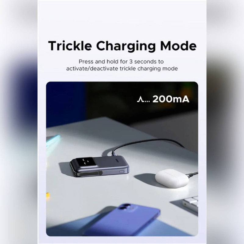 این پاوربانک بهطور ویژه برای آیفونهای سری ۱۲ به بعد طراحی شده و با پشتیبانی از استاندارد MagSafe، گزینهای عالی برای دارندگان گوشیهای اپل محسوب میشود.این محصول از بدنه سیلیکونی مقاوم و خوشدست ساخته شده است که علاوه بر ظاهر جذاب، مقاومت خوبی در برابر خطوخش و ضربه دارد. طراحی خلاقانه آن با نمایشگر کوچک TFT و شکلکهای متحرک، حس کاربری متفاوتی ایجاد میکند. همچنین یک پایه تاشو در قسمت پشتی دستگاه تعبیه شده که امکان قرار دادن گوشی در حالت افقی یا عمودی را فراهم میکند؛ قابلیتی بسیار کاربردی برای تماشای فیلم یا انجام تماسهای تصویری در حین شارژ.این پاوربانک مجهز به یک باتری ۱۰,۰۰۰ میلیآمپر ساعتی است که بسته به نوع گوشی، توانایی شارژ کامل یک تا دو بار را دارد. در بخش شارژ بیسیم، توان خروجی ۷.۵ وات ارائه میدهد و از فناوری MagSafe پشتیبانی میکند. مهمترین ویژگی آن وجود مگنت قدرتمند ۱۰ نیوتنی است که باعث میشود گوشی شما بلافاصله پس از قرارگیری روی پاوربانک شروع به شارژ کند و اتصال آن به پشت آیفون کاملاً محکم و ایمن باقی بماند؛ حتی در هنگام حرکت یا استفاده روزمره.علاوه بر شارژ بیسیم، درگاه USB-C با پشتیبانی از فناوری Power Delivery (PD) امکان شارژ سریع تا توان ۲۰ وات را فراهم میکند. این ویژگی به شما اجازه میدهد گوشی خود را در مدت کوتاهی شارژ کنید یا باتری پاوربانک را تنها در حدود سه ساعت به طور کامل پر کنید. همچنین قابلیت شارژ همزمان دو دستگاه (باسیم و بیسیم) وجود دارد.نمایشگر کوچک TFT این پاوربانک با نمایش شکلکهای جذاب و متحرک، وضعیت شارژ و عملکرد دستگاه را به شکلی متفاوت نشان میدهد. علاوه بر این، سیستم حفاظتی هوشمند آن از دستگاههای متصل در برابر افزایش جریان، دما و ولتاژ بیش از حد محافظت میکند و ایمنی کامل هنگام استفاده را تضمین میکند.ظرفیت این پاوربانک کمتر از ۱۰۰ واتساعت است و به همین دلیل حمل آن در کابین هواپیما کاملاً مجاز است. ابعاد جمعوجور و وزن سبک نیز حمل آن را بسیار آسان کرده و به یک همراه ایدهآل در سفرهای کاری یا تفریحی تبدیل کرده است.همچنین یک کابل c-c (دو سر تایپ c) به طول نیم متر و توان انتقال تا 60 وات قرار گرفته که برای شارژ پاوربانک و دستگاههای دارای درگاه تایپ c مناسب می باشد.