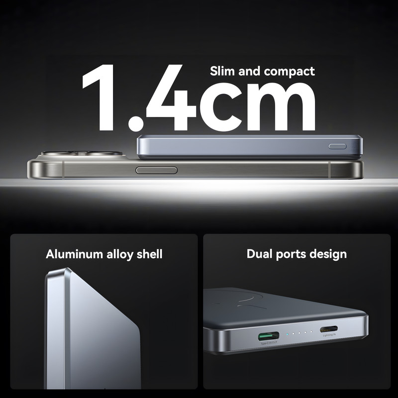 ما در تکنیک تل به دنبال خلق تجربهای متفاوت و حرفهای برای مشتریان خود هستیم. پاوربانک جوی روم مدل JR-PBM08 Pro یکی دیگر از محصولات برجسته تیم ما میباشد که با طراحی فوقالعاده نازک و ویژگیهای پیشرفته، یک انتخاب بینظیر برای کاربران مدرن است که به دنبال کارایی بالا و راحتی بیشتر هستند. این پاوربانک با ظرفیت 10,000 میلیآمپرساعت و پشتیبانی از فناوری شارژ سریع PD 20 وات، دستگاههای شما را تا سه برابر سریعتر از شارژرهای معمولی شارژ میکند. قابلیت شارژ بیسیم تا 15 وات با عملکرد Snap-and-Charge، به شما امکان میدهد بهسادگی و بدون نیاز به کابل، گوشی خود را شارژ کنید. همچنین، امکان شارژ همزمان دو دستگاه (بیسیم و باسیم) از ویژگیهای برجسته این محصول است که نهایت کارایی را برای شما فراهم میآورد. بدنه این پاوربانک از جنس آلیاژ آلومینیوم، PC و ABS ساخته شده که علاوه بر دوام بالا، طراحی زیبا و وزن سبک (176 گرم) را ارائه میدهد. ابعاد کوچک آن (103×68×14 میلیمتر) مشابه اندازه یک کارت کوچک، به شما امکان میدهد آن را به راحتی در جیب یا کیف خود حمل کنید. ماژول مغناطیسی قوی 10N اتصال پایدار و ایمنی گوشی شما را حتی در حرکت تضمین میکند. چراغ نشانگر LED هوشمند، وضعیت شارژ و میزان انرژی باقیمانده را بهوضوح نمایش میدهد و شما را از میزان شارژ پاوربانک و دستگاههای متصل آگاه میسازد. با این ویژگیها، پاوربانک جوی روم مدل JR-PBM08 Pro انتخابی ایدهآل برای استفاده روزمره، سفرها و شرایط مختلف است. پاوربانک جوی روم مدل PBM08 Pro انتخابی ایدهآل برای افرادی است که به دنبال محصولی باکیفیت و قابل اعتماد برای استفاده طولانی مدت هستند. توجه داشته باشید، محصولات اورجینال جوی روم را تنها از تکنیک تل تهیه کنید. قیمت پایین برخی فروشندگان نشاندهنده عرضه محصولات کپی و تقلبی است. با خرید پاوربانک جوی روم مدل JR-PBM08 Pro از تکنیک تل، کیفیت، اصالت و عملکردی بینقص را برای خود تضمین کنید. تکنیک تل، انتخاب هوشمندانه برای تجربه فناوریهای اصیل.