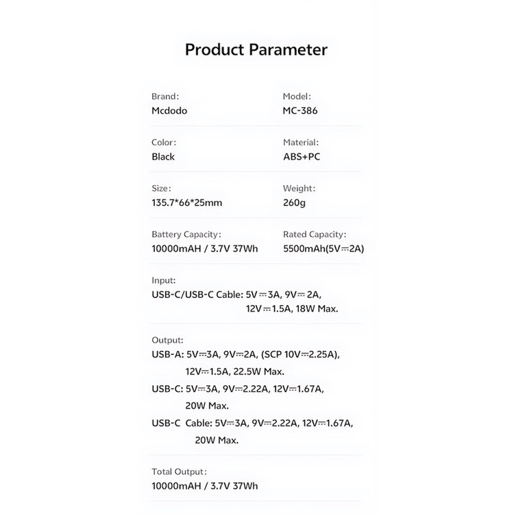 پاوربانک مک دودو مدل MC-386 ظرفیت 10000 میلی آمپرساعت