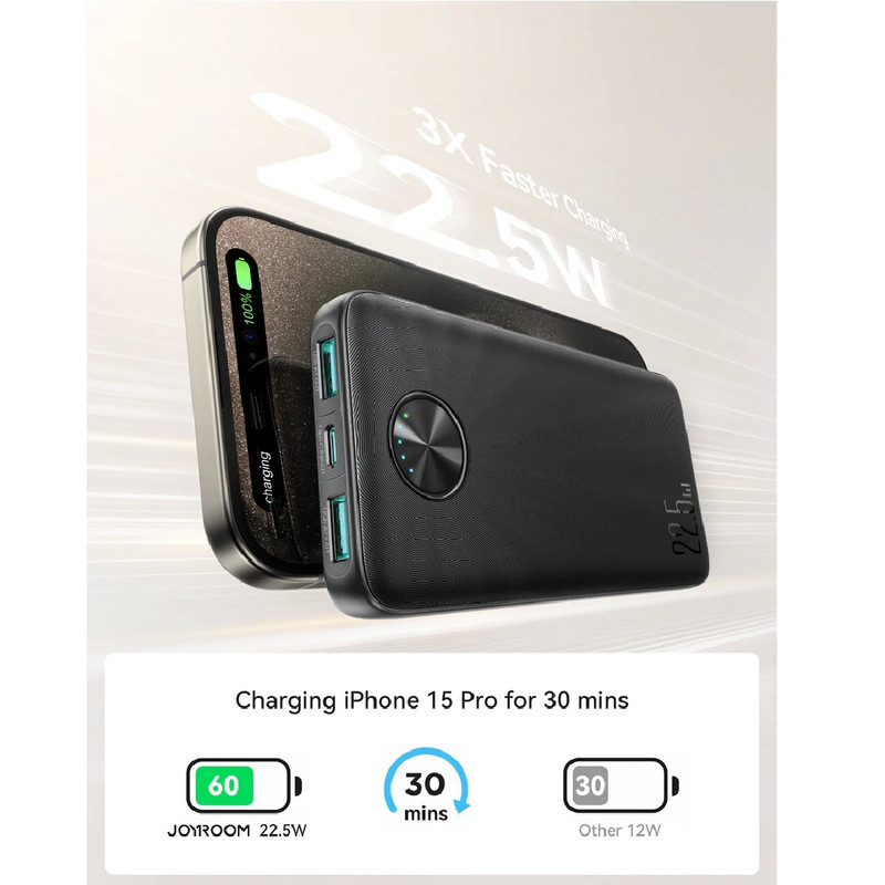 پاوربانک جوی روم مدل JR-PBF15 22.5w ظرفیت 10000 میلی آمپرساعت