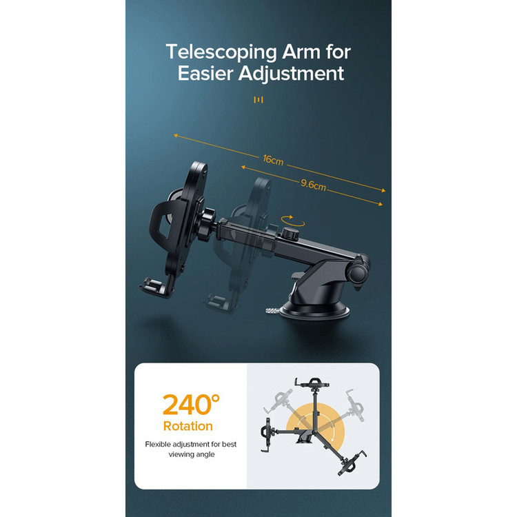 پایه نگهدارنده موبایل بنیوس مدل BE-MH01 به گونهای طراحی شده است که در برابر تکانهای شدید خودرو و حرارت داخل خودرو انعطاف پذیر و مقاوم است. این هولدر امکان نصب بر روی داشبورد یا شیشه خودرو را برای شما فراهم میکند.همچنین برای تقویت حالت ایستایی دارای گیره افزایش وکیوم در محل نصب است.طراحی ارگونومیک به شما این امکان را میدهد فقط با یک دست تلفن همراه خود را بر روی هولدر قرار دهید یا بردارید.دهانه نکهداره گوشی تلفن همراه دارای دکمه آسان باز شو در پشت آن است که با فشار دادن آن دهانه به صورت اتوماتیک باز میشود.تغییرات دهانه از 55 تا 95 میلیمتر است. دهانه نگهدارنده دارای امکان چخش 360 درجه را دارد و این امکان را فراهم میکند که گوشی را با هر زاویهای که دوست دارید روی آن تنظیم کنید.طول بدنه هولدر به صورت تلسکوپی وقابل تغییر است و این امکان را میدهد که گوشی را به خود نزدیک یا دور نمایید و تغییر زاویه 240 درجه داشته باشید.جنس بدنه از ABS و EVA درجه یک است.