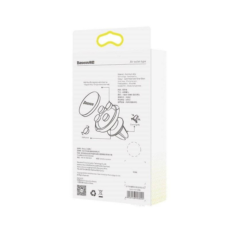 پایه نگهدارنده باسئوس مدل SUER-A01 با طراحی کوچک و جم وجور یک نگهدارنده ماشین مغناطیسی است که از طریق دریچه هوای ماشین متصل می شود. به دلیل استفاده از مواد آلومینیومی با کیفیتی که در این پایه بکار رفته شده است دارایی وزنی سبک و ساخناری مقاوم می باشد. پانل های پلاستیکی در قسمت اتصال مانع لغزش تلفن همراه شما می شود. 4 آهن ربایی که در ساخت این پایه بکار رفته است، سبب گیریایی قوی و اتصال محکم گوشی موبایل شما به پایه می شود با این حال به راحتی می توانید تلفن را متصل یا جدا کنید؛ این اتصال به قدری محکم است که در هنگام ترمز شدید در رانندگی یا مسیر های پر دست انداز گوشی موبایلتان جدا نشده و بر روی پایه می ماند. این آهن رباها بر روی آنتن دهی و سیگنال های دریافتی اختلا ایجاد نمی کنند. شما می توانید در عین رانندگی از تلفن همراه خود استفاده کنید و تنها با یک دست با گوشی موبایل تان کار کنید. به طراحی پایه به طوری است بر تمرکز راننده و ایمنی شما تأثیر منفی نخواهد گذاشت. طراحی و اندازه پایه نگهدارنده باسئوس مدل SUER-A01 طوری است که از میدان دید شما نمی کاهد و مانع دید راننده نمی شود، از طرفی به علت اینکه اتصال پایه نگهدارنده توسط دریچه کولر قرار می گیرد در صورتی که اندازه پایه بزرگ باشد جلوی جریان هوای عبوری از دریچه را می گیرد، به همین دلیل اندازه کوچک این پایه ها یک ویژگی مهم برای این محصول حساب می شود. محل اتصال این پایه از جنس پلی اورتان های حرارتی ساخته شده تا تا در هنگام اتصال و یا جدا کردن مانع ایجاد خراش های جزئی بر روی دریچه کولر شود با توجه به نحوه اتصال پایه نگهدارنده باسئوس مدل SUER-A01 بر خلاف مدل هایی که با چسب متصل می شوند، بدون مشکل می توان چندین مرحله این پایه را نصب و یا جدا کرد. صفحه مغناطیسی عملکرد چرخشی 360 درجه را بر روی سر توپی محل اتصال این صفحه دارد،به همین دلیل این پایه می تواند سطوح دید نامحدودی را به کاربر ارائه دهد. در بسته بندی این محصول 2 صفحه فلزی جهت اتصال گوشی موبایل به پایه قرار دارد یک صفحه برای چسباندن از روی کاور و دیگری برای زمانی که بخواهید از زیر کاور گوشی این صفحه آهنی قرار گیرد و از ظاهر موبایل شما را تحت تاثیر قرار ندهد.