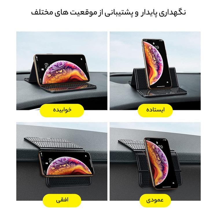 امروزه هولدر های بسیاری در بازار موجود می باشند که هر کدام کارایی خاص به خود را دارند. کمپانی Baseus با ساخت هولدری به نام Folding Bracket Antiskid Pad دست کاربر را بسیار باز گذاشته تا بتواند علاوه بر گوشی همراه ، محصولات دیگری را هم به آن متصل کند. این محصول یک پد چسبنده می باشد که هر جسمی را به خوبی نگه می دارد و شما می توانید محصولاتی از قبیل کلید ، عینک ، ساعت و ... را هم به آن متصل کنید. هولدر Baseus SUWNT-02 قابلیت این را داشته که گوشی شما را به صورت استند نگه دارد زیرا شما می توانید بدنه آن را به راحتی خم کنید تا به حالت استند بر روی میز و یا داشبورد اتومبیل شما قرار بگیرد. در قسمت زیرین این هولدر چسبی قوی قرار دارد که می توانید از طریق آن این محصول را به داشبورد ، دیوار و میز نصب بکنید. شما می توانید این هولدر را به دیوار متصل بکنید و مداد ، خودکار و ... و این بدین معناست که می توانید از این محصول در هر جایی استفاده بکنید. این هولدر قابلیت شست و شو دارد و بعد از هر بار شستن دوباره چسب آن به حالت اولیه باز می گردد و میزان چسبندگی آن کاهش نمی یابد. ابعاد این هولدر 122*205 میلی متر بوده و قابلیت انعطاف پذیر داشته تا بتوانید به راحتی آن را در هر مکانی مرود استفاده قرار دهید.