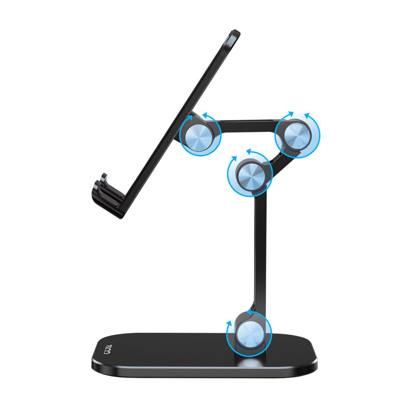 دارای پایه فلزی , قابلیت جمع شوندگی , مناسب برای موبایل و تبلت , طراحی مثلث ارگونومیک با قابلیت ضد لغزش , قابلیت تنظیم به زاویه بهینه 120 درجه
