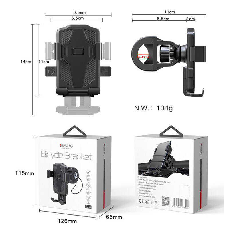 استفاده از تلفن همراه در برخی مواقع بسیار خطرناک و حتی غیر ممکن است ! تصور کنید روی موتور یا دوچرخه نشستهاید و میخواهید با موبایل خود مسیر پیش رو را بررسی کنید، دیدن مداوم و چک کردن لحظهای صفحه نمایش امری بسیار خطرناک در این حالت است که رانندگی شما را تحت تاثیر قرار میدهد. هولدر یسیدو Yesido C94 با طراحی خوبی که دارد میتواند مشکلات استفاده از گوشی هنگام دوچرخه سواری و راندن موتور را از بین برده و امکان استفاده از آن را برای شما فراهم کند و خطرات آن را کاهش دهد. هولدر Yesido C94 بر روی دسته دوچرخه و موتور قرار میگیرد و بدین صورت میتواند مورد استفاده قرار گیرد. این هولدر از جنس ترکیبی سیلیکون، PC و ABS ساخته شده است و مقاومت خوبی را در اختیار شما قرار میدهد. نحوه استفاده از این دستگاه هم آسان است و نیاز به انجام کار خاصی نیست. بهطور کلی چهار کلید روی هولدر قرار داده شده است که از طریق آنها میتوانید موبایل خود را در بهترین حالت قرار داده و محکم در جای مخصوص به خود بگذارید. دو کلیدی که در کنار هولدر قرار داده شده است، برای باز کردن قفل هولدر است، با این دو کلید ابتدا قفل را باز کرده و سپس گوشی خود را میتوانید درون هولدر قرار دهید. کلید دیگری روی بدنه هولدر تعبیه شده که محل قرار گیری آن پشت گوشی است. پس از جای دادن گوشی در محل مناسبش، با این دکمه باید بازوهای هولدر را پس از تنظیم، قفل کرده و تلفن همراه را محکم کنید. لازم به ذکر است که در قسمت پشتی خود هولدر کلید دیگری وجود دارد که با استفاده از آن میتوانید ارتفاع پایه را نیز تنظیم کنید. در حالت عادی، ارتفاع هولدر برابر با 11 سانتیمتر است و در حالتی که آن را باز کنید، حداکثر به 14 سانتیمتر کشیده خواهد شد. فرم مثلثی نگهدارنده یکی از بهترین طراحیها جهت نگهداشتن موبایل است که در این هولدر نیز از آن الهام گرفته و پیادهسازی شده است. این هولدر برای تمامی گوشیهایی با ابعاد بین 4.5 تا 7 اینچ مناسب و قابل استفاده است. قسمتی از بدنه که هولدر را به پایه متصل میکند، به صورت کروی طراحی شده، این شکل کمک میکند تا شما امکان چرخش و حالت دادن به نگهدارنده را به صورت 360 درجه داشته باشید و بتوانید به خوبی و به شکل دلخواه آن را تنظیم نمایید.
