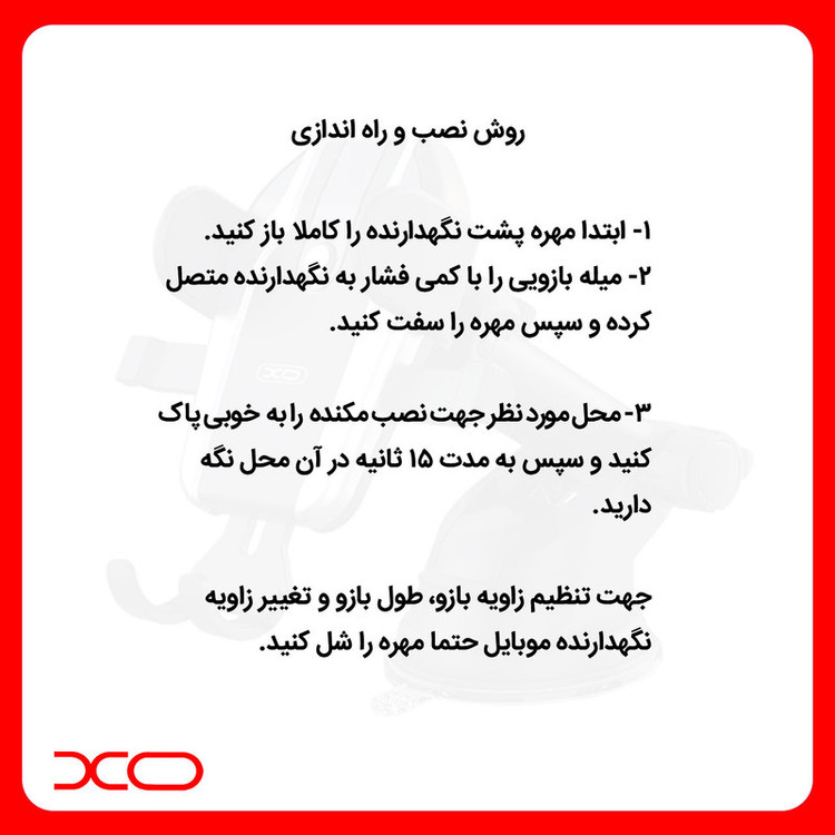 یکی از دغدغه های اصلی همه ی رانندگان دسترسی مستقیم به گوشی موبایل است بخصوص کسانی که مشاغلی مثل آژانس و اسنپ کار می کنند. نیاز به برنامه های مسیریابی باعث شده که اهمیت داشتن هولدر یا پایه نگهدارنده بسیار بالا برود. پایه نگهدارنده ایکس او مدل XO-C77 با قابلیت چرخش 360 درجه و نصب محکم و مقاوم روی داشبورد، کنسول و شیشه ماشین خیال همه رو راحت کرده و دیگه نیاز نیست نگران افتادن گوشی موبایلتون باشید. دارای بازویی قابل تنظیم می باشد که می توانید در جهت دلخواه تنظیم کنید همچنین برای نصب محصول ابتدا محل مورد نظر را از گرد و غبار پاک کنید و سپس نصب کنید و تا چند روز جا به جا نکنید تا کاملا بچسبد.