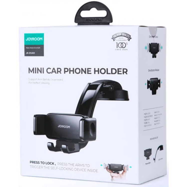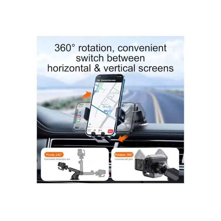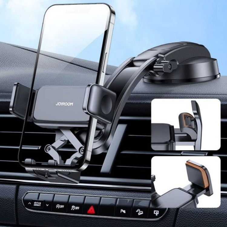 هولدر موبایل داشبورد و شیشه جلو خودرو جویروم JR-ZS283 : مطمئنترین راه برای استفاده از موبایل هنگام رانندگی تهیه یک هولدر گوشی است که کمپانی جویروم انواع مختلفی از آن را تولید کرده و یکی از نمونههای آن با نام تجاری JOYROOM Holder CAR MOUNT JR-ZS283 به بازار عرضه شده است. طراحی دقیق : کیفیت هولدر خودرو جویروم را مواد ABS و پلیکربنات نسوز تضمین میکنند و از دوام بسیار بالایی در برابر ضربه، آسیب و حرارت برخوردار است. سیلیکون به کار رفته در آن هم از آسیب به گوشی و ایجاد خطوخش روی بدنه آن جلوگیری میکند. این پایه نگهدارنده گوشی جویروم با داشتن بازویی بلند به راحتی قابل قرار دادن در دیدرس راننده بوده و به راحتی میتوان زاویه داید را تنظیم کرد؛ قابل نصب روی داشبورد و شیشه جلو خودرو ماشین است. وزن این هولدر 168 گرم است و از قدرت چسبندگی بالایی برخوردار است. با گوشیهایی با ابعاد 4.7 تا 6.7 اینچ سازگار است. تنظیم زاویه : جویروم با توجه به نیازتان قابلیت چرخش 360 درجهای را برای این هولدر موبایل داشبورد درنظر گرفته است تا امکان چرخش برای شما فراهم باشد و گوشی را در حالت افقی یا عموی قرار دهید. زاویه شیب هم قابل تنظیم میباشد.