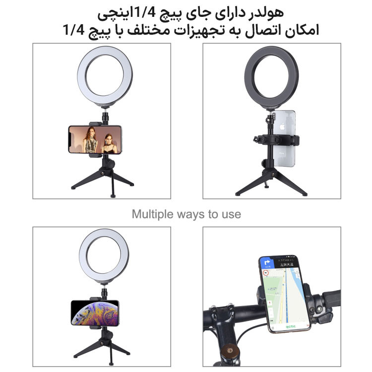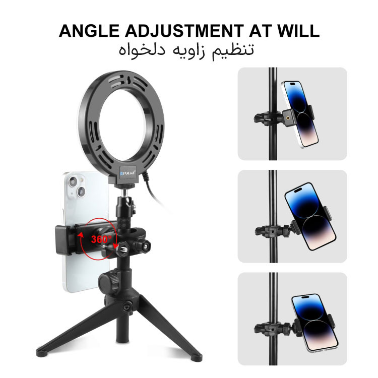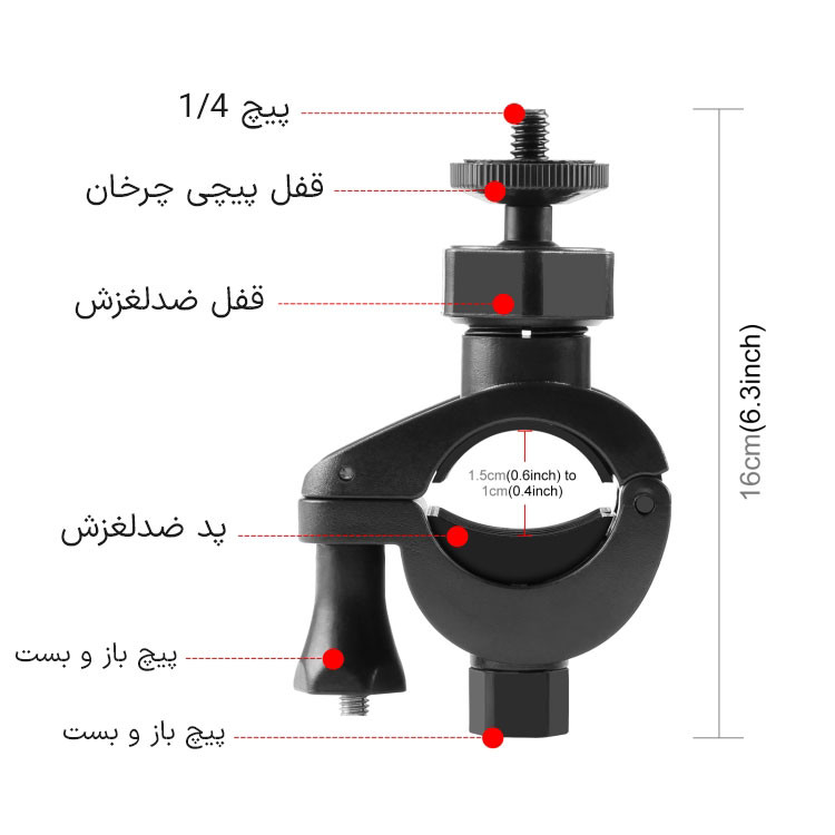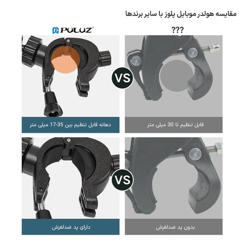 نگهدارنده موبایل PULUZ مدل Handlebar با قابلیت اتصال به میله مانند سه پایه نور، پایه صندلی، میله بوم، فرمان دوچرخه و … یک ابزار کاربردی برای عکاسی و فیلمبرداری است. با استفاده از نگهدارنده موبایل Handlebar میتوانید بدون نیاز به سه پایه موبایل به عکاسی، سلفی، تولیدمحتوا و … بپردازید. نگهدارنده موبایل با حداقل قطر 5.5cm و حداکثر 8.5cm با اکثر گوشیهای هوشمند سازگاری دارد. همچنین گیره اتصال برای میلههایی به قطر 17 تا 35 میلیمتر مناسب خواهد بود. از مهمترین ویژگیهای این نگهدارنده موبایل به میله میتوان به امکان عکاسی و فیلمبرداری در هر دو زاویه عمودی و افقی، امکان چرخش و زاویهدهی اشاره کرد.نگهدارنده موبایل به میله دارای لاستیک محافظ نرم بوده و به این ترتیب موجب محکم نگهداشتن گوشی و در عین حال محافظت از آن خواهد شد. وجود جای پیچ 1.4 اینچ نیز به شما امکان میدهد تا نگهدارنده موبایل را به وسایل دارای پیچ استاندارد 1.4 اینچ متصل نمایید.قابلیت چرخش 360 درجه و همچنین زاویهدهی از دیگر ویژگیهای نگهدارنده موبایل Handlebar است. این هولدر برای مواقعی که فضای زیاد برای قرار دادن جداگانه سهپایه موبایل وجود ندارد انتخاب مناسبی خواهد بود.