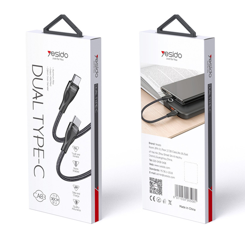 با پیشرفت تکنولوژی همچنان کابل های ایمن ترین و سریع ترین راه برای شارژ و انتقال اطلاعات برای گوشی های همراه می باشد. کمپانی خوش نام Yesido با ساخت کابلی با کیفیت این امکان را برای کاربران خود به وجود آورده تا بتوانند به راحتی گوشی همراه خود را با سرعت بالا و با اطمینان خاطر شارژ کرده و به انتقال اطلاعات میان دو گوشی موبایل و یا لپ تاپ نمایند. کابل Yesido CA82 به شما این امکان را می دهد تا بتوانید گوشی موبایل خود را با شدت جریان و ولتاژ 5V-2.4A شارژ کنید که سرعت مطلوبی برای شارژ محسوب می شود. طول این کابل 30 سانتی متر بوده که برای استفاده های روزمره بسیار مناسب می باشد.با استفاده از این محصول می توانید میان یک موبایل Type-C دار و یک موبایل یا لپ تاپ مجهز به پورت Type-C به انتقال اطلاعات با سرعت بالا بپردازید. کمپانی یسیدو برای جلوگیری از گره خوردن ، کشش و پارگی این کابل بر روی آن روکشی از الیاف در هم تنیده کشیده ، که علاوه بر مقاومت بالا ، باعث زیبایی آن هم شده است. این کابل به شما این امکان را هم می دهد تا بتوانید به راحتی علاوه بر شارژ ، اطلاعات خود را هم با سرعت بالا انتقال دهید. در ادامه سوکت های این محصول قسمتی سیلیکونی قرار داده شده است که باعث شده تا به راحتی در اثر خم شدن شدن آسیبی به آن وارد نشود.