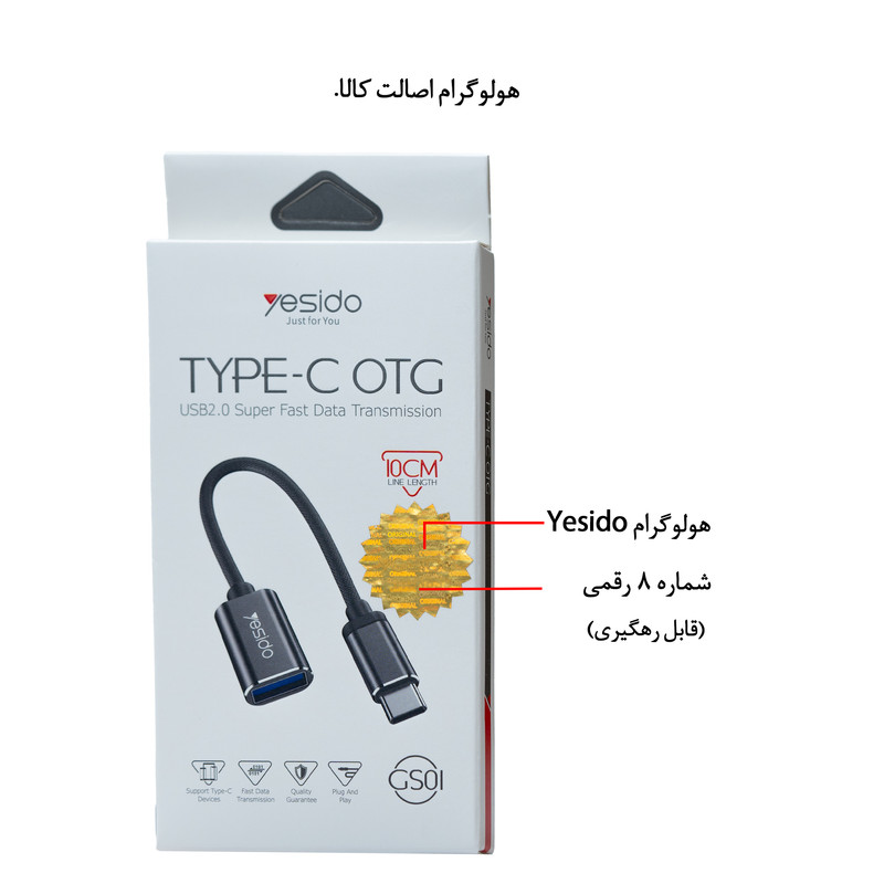 کمپانی یسیدو از معتبرترین کارخانه های تولید لوازم جانبی موبایل میباشد که محصولاتی با کیفیت و قیمتی معقول روانه بازار میکند ،یسیدو برای تشخیص محصول اصلی از غیر اصل اقدام به نصب هولوگرام طلایی با که رهگیری بر محصولاتش نمده است . مبدل OTG یو اس بی به تایپ سی مدل GS01 از USB پشتیبانی میکند که انتقال اطلاعات با حداکثر سرعت انجام میشود ، با استفاده از این مبدل میتوان انواع فلش مموری تا ظرفیت 512 گیگا بایت ، کیبرد ، موس ، دوربین ، گیم پد و ... را به انواع گوشی و تبلت و لپ تاپ مجهز به درگاه یو اس بی Type-C وصل کرد . کابل این مبدل با روکش الیاف مصنوعی پلی اورتان ساخته شده که استحکام بسیار بالایی دارد .