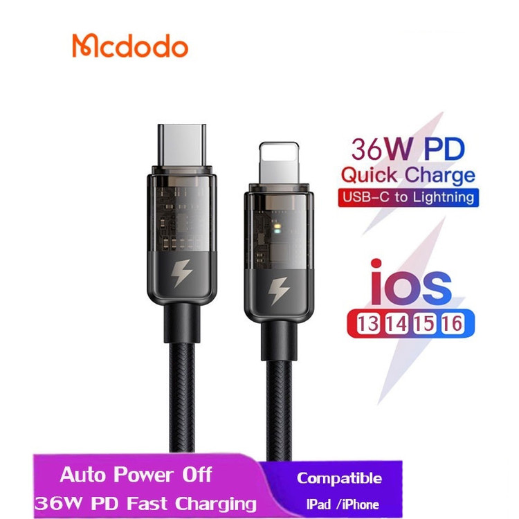 کابل Mcdodo CA-3160 با شدت جریان 3 آمپر و توان 36 وات، سیمی از جنس نایلون بافته شده و کانکتورهایی با روکش آلیاژ آلومینیوم انتخاب مناسبی برای کسانی است که از محصولات اپل استفاده می کنند. این کابل با رابط لایتنیگ به تایپ سی می تواند گوشی شما را در کمترین زمان شارژ کند.این کابل از آلیاژ روی و نالیون ساخته شده است که دارای قابلیت شارژ سریع و انتقال داده است و در برابر گره خوردن، کشش و سایش مقاوم است. این کابل شارژ آیفونی دارای هسته مس ضخیم است و با پشتیبانی از قابلیت فست شارژ PD حداکثر شدت جریان عبوری 3 آمپر ارائه می دهد و انتخاب مناسبی برای کسانی است که بخواهند شارژ سریع داشته باشند. البته فراموش نکنید که رسیدن به این شدت جریان علاوه بر کابل، به کلگی شارژری که از آن استفاده می کنید و مدل گوشی شما هم بستگی دارد و آن ها نیز باید این شدت جریان را عبور دهند. کابل ایفونی مک دودو CA-3160 برای انتقال دیتا نیز مناسب است و می تواند با حداکثر سرعت 480Mbps دیتا را انتقال بدهد. برای مشخص شدن وضعیت شارژ گوشی می توانید از نشانگر LED که در سر کانکتور لایتنینگ کابل قرار دارد استفاده کنید. در صورتی که رنگ این کانکتور آبی و ثابت باشد به منظور شارژ با سرعت معمولی است. در صورتی که به رنگ نارنجی و متناوب باشد به معنی شارژ سریع است و اگر خاموش شود به معنای فول شارژ شدن گوشی شماست. این کابل داغ نمی شود و ایمنی شما و گوشی شما را حین شارژ تامین می کند. از ویژگی های کابل مک دودو CA-3160 می توان به قابلیت قطع خودکار جریان شارژ و شارژ دوباره در صورت کم شدن شارژ اشاره کرد. عملکرد این کابل به این گونه است که زمانی که گوشی شما به شارژ کامل برسد برای جلوگیری از آسیب رسیدن به باتری به شکل اتوماتیک جریان را قطع می کند. ممکن است در اثر گذر زمان مجدد شارژ گوشی شما کم شود. در این صورت مجددا جریان را وصل می کند تا زمانی که شما به گوشی خود مراجعه می کنید گوشی فول شارژ باشد و به همین دلیل هیچ آسیبی در هنگامی که شب تا صبح گوشی خود را در شارژ بگذارید به باتری موبایل شما وارد نمی شود.