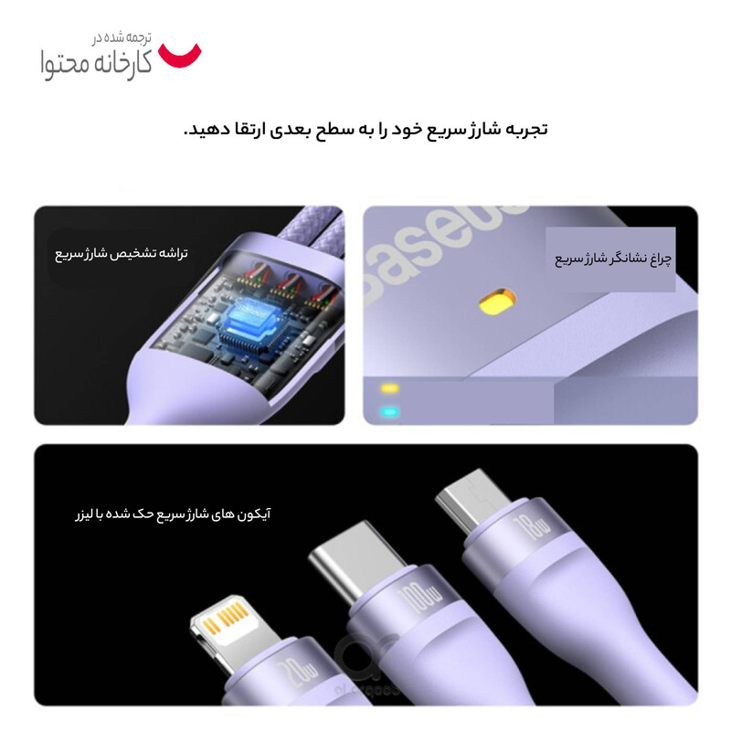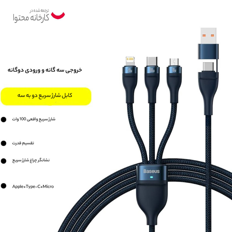 کابل تبدیل USB/USB-C به لایتنینگ/USB-C/micro-USB باسئوس مدل Flash Series 2-100W طول 1.2 متر