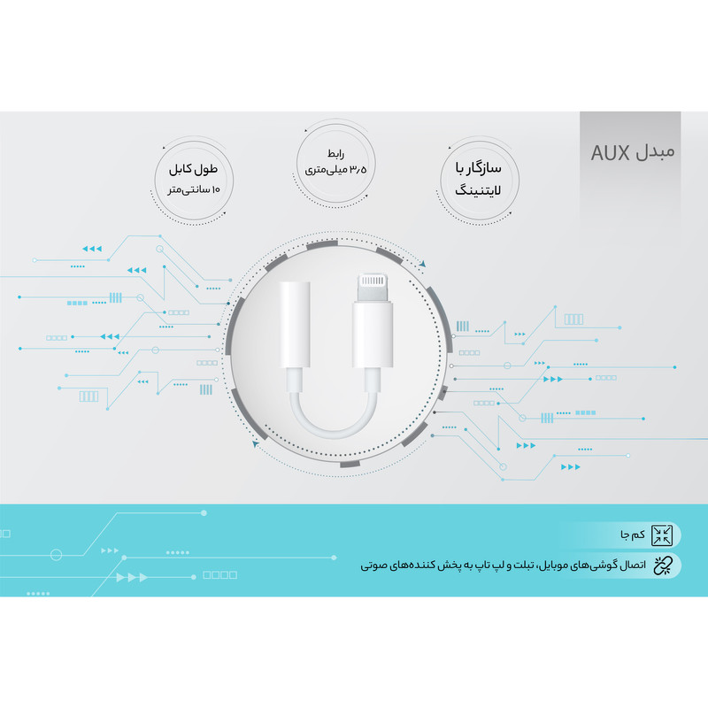 با مبدل لایتنینگ به جک 3.5 میلیمتری هدفون «اپل» میتوانید انواع هدفونهای مجهز به کانکتور 3.5 میلیمتری را به آیفون 7 یا 7 پلاس خود متصل کرده و با استفاده از آن به موسیقی گوش دهید. نسل جدید در گوشیهای موبایل آیفون درگاه 3.5 میلیمتری صدا ندارد و شما تنها میتوانید با استفاده از درگاه لایتنینگ آن به موسیقی گوش داده و با هدفون مکالمه کنید. این محصول بهراحتی داخل کوچکترین جیب یا کیفها جای میگیرد و شما میتوانید همیشه آن را همراه خود داشته باشید. در یک سمت از این مبدل، یک کانکتور لایتنینگ وجود دارد که با انواع گوشیهای موبایل آیفون، آیپد و دیگر دستگاههای مجهز به درگاه لایتنینگ سازگاری خواهد داشت. شما میتوانید کانکتور لایتنینگ در این محصول را به آیفون یا آیپد خود متصل کنید. سپس با استفاده از درگاه 3.5 میلیمتری در آن که سمت دیگر مبدل قرار گرفته، هدفون، هندزفری یا دیگر لوازم مجهز به کانکتور 3.5 میلیمتری را به آیفون یا آیپد خود متصل کنید. کانکتورهای بهکاررفته در این مبدل مقاوم هستند و رشتههای سیمی آن با استفاده از روکشی از جنس TPE پوشانده شده است. این روکش هم مقاومت دارد و باعث میشود رشتههای سیمی در برابر قطعشدن مقاوم باشند. توجه داشته باشید که طول کابل بهکاررفته در این مبدل کم است و این مبدل تنها برای افرادی که قصد دارند همیشه یک کابل انتقال صدا برای تبدیل درگاه لایتنینگ به جک 3.5 میلیمتری صدا همراه خود داشته باشند، مناسب و کارآمد خواهد بود.