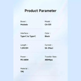 کابل تایپ سی Mcdodo CA-3310 Type C To Type C Transparent Data Cable Auto Off 1.2m 240W : کابل Mcdodo CA-3310 با طول 1.2 متر و حداکثر توان عبوری 240 وات با سیمی از جنس TPE و کانکتورهایی با پوشش شفاف انتخاب مناسبی برای کسانی است که از محصولات دارای پورت Type C استفاده می کنند. مشخصات کابل مک دودو CA-3310 : کابل مک دودو CA-3310 از آلیاژ روی و نایلون بافته شده ساخته شده است که دارای شارژ سریع و انتقال داده می باشد. کانکتور های به صورت شفاف ساخته شده و محتوای آن های قابل رویت است و سیم آن دارای پوششی از نایلون بافته شده و در برابر گره خوردن، کشش و سایش مقاوم است. به ادعای شرکت سازنده طراحی SR کانکتورها موجب شده تا در برابر 30000 مرتبه خم شدن و 10000 مرتبه متصل کردن و برداشتن مقاوم است. طول سیم کابل مک دودو CA-3310 برابر 1.2 متر است. کابل Mcdodo CA-3310 دارای هسته مس ضخیم است و حداکثر توان عبوری 240 وات و شدت جریان عبوری 5 آمپر ارائه می دهد و انتخاب مناسبی برای کسانی است که بخواهند شارژ سریع داشته باشند که برای لپ تاپ و تبلت نیز مناسب است. البته رسیدن به این ویژگی به شارژری که از آن استفاده می کنید و مدل گوشی شما هم بستگی دارد. کابل Mcdodo CA-3310 برای انتقال دیتا نیز مناسب است.همچنین سرعت انتقال دیتا 480mbps است که می توانید در کمترین زمان ممکن اطلاعات را به سیستم نیز انتقال دهد.