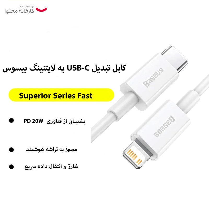 کابل تبدیل USB-C به لایتنینگ بیسوس مدل Superior Series Fast طول 0.25 متر