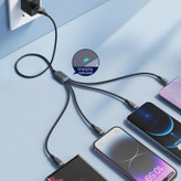 S-1T4018A18 یک کابل USB چهار در یک از JOYROOM است. یک سر آن دارای کانکتور USB-A و سر دیگر آن دارای یک کانکتور Type-C و دو کانکتور Lightning، و یک کانکتور Micro است. این امر به شما امکان می دهد 4 دستگاه را به طور همزمان شارژ کنید، صرف نظر از نوع کانکتور آنها. S-1T4018A18 دارای جریان کل 3.5 آمپر است، بنابراین می تواند چندین دستگاه را به طور همزمان با سرعت بالا شارژ کند. همچنین دارای یک چیپ هوشمند داخلی است که از دستگاه های شما در برابر شارژ بیش از حد و گرم شدن بیش از حد محافظت می کند. S-1T4018A18 از مواد با کیفیت بالا، از جمله آلیاژ آلومینیوم و نایلون بافته شده ساخته شده است، بنابراین بادوام است و می تواند در برابر سایش و پارگی روزمره مقاومت کند. همچنین 1.2 متر طول دارد که برای اکثر نیازهای شارژ طول مناسبی است. به طور کلی، S-1T4018A18 یک کابل شارژ سریع داده چهار در یک همه کاره و با کیفیت بالا است. این گزینه خوبی برای افرادی است که دارای چندین دستگاه با انواع مختلف کانکتور هستند یا به یک راه حل شارژ سریع و قابل اعتماد نیاز دارند. اگر به دنبال یک کابل شارژ سریع داده چهار در یک همه کاره و با کیفیت بالا هستید، S-1T4018A18 گزینه خوبی برای در نظر گرفتن است.