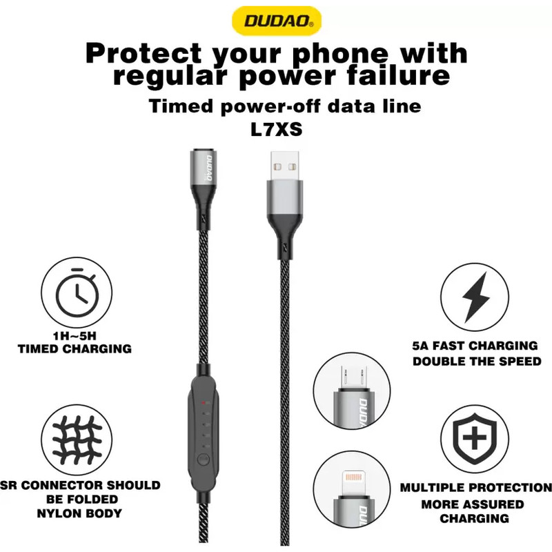 شاید برای شما هم پیش آمده باشد که بعد از مدتی باتری گوشی همراهتان با مشکل مواجه شود و دلایل آن هم شارژر نا مناسب ، کابل بی کیفیت و یا شارژ بیش از حد می باشد.کمپانی DUDAO با ساخت کابل L7XS-V2 از بسیاری از این مشکلات جلوگیری کرده است. این کابل دارای کانکتور لایتنینگ بوده و فقط برای موبایل اپل و تبلت ایپاد مناسب می باشد . شما می توانید با استفاده از کابل تایمردار دودا گوشی خود را با شدت جریان و ولتاژ 5V-2.4A شارژ کنید که سرعت بالایی برای شارژ گوشی همراه محسوب می شود. بدنه کابل تایمردار دودا به صورت کنفی طراحی شده تا در برابر کشش ، پارگی ، خم شدن و گره خوردن مقاومت بالایی داشته باشد. طول کابل اپل تایمردار 100 سانتی متر بوده و برای استفاده های روزمره بسیار مناسب است چرا که نه آنقدر بلند بوده تا مزاحمتی ایجاد کند و نه آنقدر کوتاه است که دچار محدودیت شوید. در میان بدنه کابل DUDAO L7XS-V2 یک تایمر قرار دارد که می توانید با فشار دادن کلید آن ، تایم آن را از بین 0 تا 5 ساعت انتخاب بکنید.زمانی که کابل بر روی تایم 0 قرار دارد هیچگونه شدت جریانی در آن وجود ندارد و گوشی شما را شارژ نمی کند و زمانی که شما زمان برای آن تایین می کنید بعد از گذشت آن مدت شارژ متوقف می شود تا هیچگونه آسیبی به باتری گوشی شما وارد نشود. شما می توانید علاوه بر شارژ ، اطلاعات خود را هم با سرعت بالا از طریق این محصول انتقال دهید. سوکت های این محصول دارای یک روکش فلزی بوده و همین امر باعث شده مقاومت آن در برابر ضربه و فشار از توان بالایی برخوردار باشد.کابل دودا دارای محافظ جهت جلوگیری از آسیب در برابر نوسانات برق میباشد