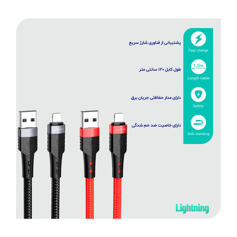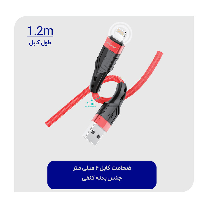 کابل تبدیل USB به لایتنینگ بروفون مدل BU35 طول 1.2 متر