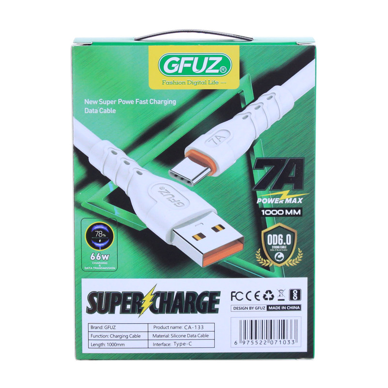 کابل مدل CA-133 «جی فوز» با قابلیت پشتیبانی از شارژ فوق سریع یک متر طول داشته و دارای روکش سیلیکونی است. این روکش مقاومت زیادی دارد و رشتههای داخل کابل را در برابر قطعشدن براثر کشیدن، خم شدن و گره خوردن مقاوم است. همچنین کانکتورهای بهکاررفته در این کابل بسیار مقاوم هستند و دارای استاندارد های روز جهانی است. شما میتوانید از این کابل برای شارژ و انتقال اطلاعات میان دستگاههای مختلف استفاده کنید. شدت جریان عبوری این کابل 5 آمپر است که از قابلیت شارژ فوق سریع یا Fast Charging پشتیبانی میکند و با آداپتور های تا 67 وات سازگار است. همچنین این محصول دارای تمامی استانداردها بوده و در زمان استفاده از آن هیچ خطری دستگاه شما را تهدید نخواهد کرد.