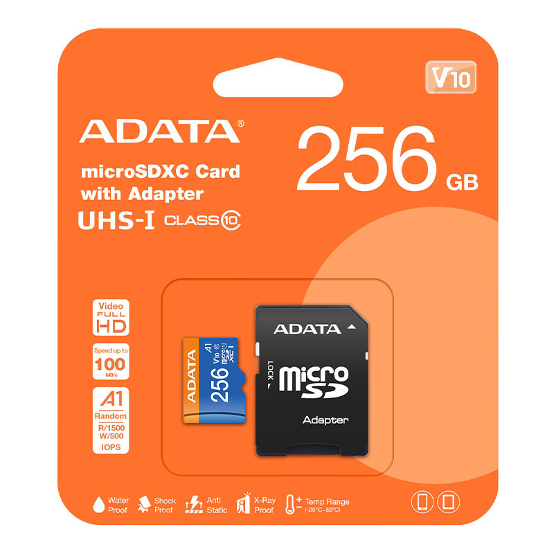 کارت حافظه microSDXC ای دیتا مدل premier کلاس 10 استاندارد UHS-I U1 سرعت 100 MBps ظرفیت 256 گیگابایت به همراه آداپتور SD